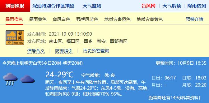 受臺(tái)風(fēng)“獅子山”影響,目前深圳市臺(tái)風(fēng)白色預(yù)警、強(qiáng)季風(fēng)藍(lán)色、分地區(qū)暴雨橙色預(yù)警、暴雨黃色預(yù)警、分區(qū)地質(zhì)災(zāi)害氣象風(fēng)險(xiǎn)橙色、地質(zhì)災(zāi)害氣象風(fēng)險(xiǎn)黃色等六大預(yù)警生效中。