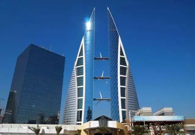 巴林世貿(mào)中心,是全球第一座利用風能作為電力來源的摩天大樓。在兩座大廈之間設(shè)置了水平支持的3座直徑29米的風力渦輪。風電機組能夠支持大廈所需用電的11%-15%。
