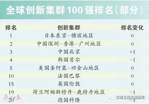 2020年、2021年被進一步擴大為“深圳-香港-廣州”創(chuàng)新集群,仍居第二。