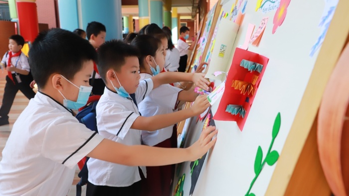 清晨,學(xué)生們帶著親手制作的節(jié)日賀卡來到學(xué)校,用心地貼在節(jié)日祝福板上,隨后,少先隊(duì)員代表向全體教師送上鮮花。一張張精美的卡片,一句句真切的話語,一束束美麗的鮮花,表達(dá)了學(xué)生對老師的感恩與祝福。