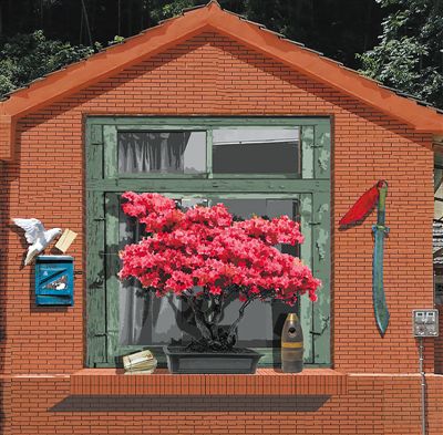 安徽省六安市霍山縣諸佛庵鎮(zhèn)丙烯壁畫《窗前的杜鵑花》,中國美術(shù)學(xué)院繪畫藝術(shù)學(xué)院師生集體創(chuàng)作。  |