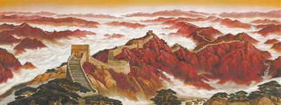 中國共產(chǎn)黨歷史展覽館漆壁畫《長(zhǎng)城頌》,作者程向軍。  |