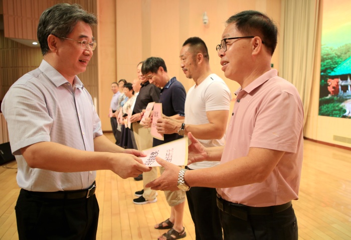 2021年9月10日,第37個(gè)教師節(jié),中山紀(jì)念中學(xué)在音樂廳召開全體教工大會(huì),為25位退休教工舉行集體歡送儀式。