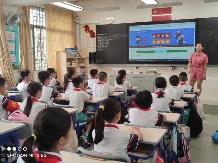 在課上,老師結(jié)合中山反詐騙網(wǎng)站的動(dòng)漫視頻以及警官分析的詐騙案例,為孩子們講解五花八門(mén)的電信詐騙,更講解了怎么預(yù)防,和被騙后怎么做。主題班隊(duì)活動(dòng)結(jié)束后,學(xué)生都知道自己被騙后最關(guān)鍵就是要抓緊“時(shí)間”,要抓緊時(shí)間凍結(jié)自己的相關(guān)號(hào)碼信息,而最有效的防范手段就是:心頭切莫有貪念,只要牢牢記住“天上不會(huì)掉餡餅”!就可以大大降低上當(dāng)受騙的幾率。