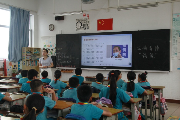 偶像,曾幾何時只是歌星、演員等,長大后,才意識到真正的偶像是舍生忘義、責(zé)任擔(dān)當(dāng),他們是不畏犧牲的革命先烈、是苦心專研的科學(xué)家、是深入基層的青年黨員干部、是奔赴一線的戰(zhàn)疫者等。青少年時期是學(xué)生形成世界觀、人生觀和價值觀的重要階段。為了引導(dǎo)學(xué)生樹立正確的世界觀、人生觀、價值觀。9月27日上午,民眾街道育才小學(xué)開展“我看偶像”主題班會課活動。
