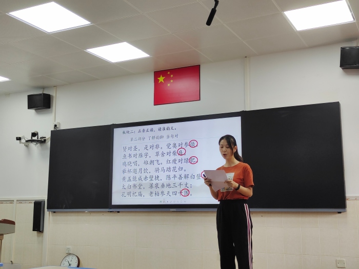 16日,組內(nèi)初賽如期舉行。13節(jié)課,13種風格;13位青年教師,13種看家本領。授課內(nèi)容均選自國學啟蒙、經(jīng)典詩詞等中華優(yōu)秀傳統(tǒng)文化。有的老師運用視頻、圖片等多媒體手段,帶領學生走進詩詞,感受詩詞的韻味;有的老師深挖文本,由朗讀到吟誦再到配樂吟詠,由淺入深,引導學生讀中悟,體會詩人的心境;有的老師從實際出發(fā),提舉生活實例,讓學生在生活中接受傳統(tǒng)文化的熏陶,讓傳統(tǒng)美德如春風潤物細無聲般地浸潤孩子的心田。執(zhí)教的老師扎實的課堂基本功、豐厚的文化底蘊以及靈動的課堂設計讓人印象深刻,課堂效果可謂精彩紛呈。