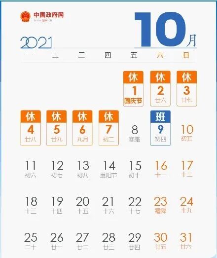 注意,本周上班時(shí)間有變!根據(jù)國(guó)務(wù)院辦公廳印發(fā)的《關(guān)于2021年部分節(jié)假日安排的通知》,2021年國(guó)慶節(jié)假期安排為:10月1日至7日放假調(diào)休,10月9日(星期六)上班。