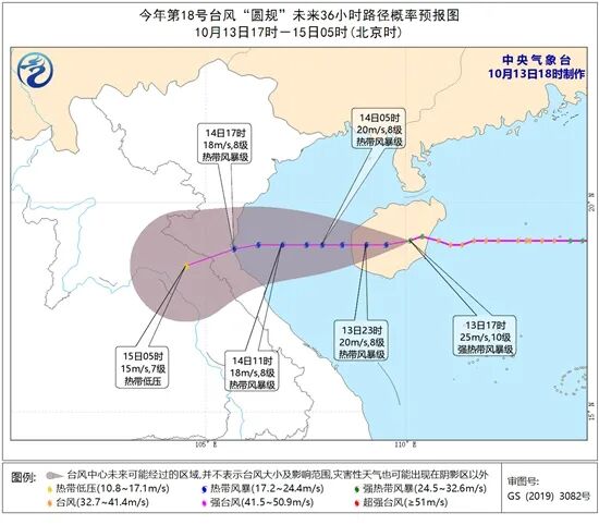 預(yù)計,“圓規(guī)”將以每小時20公里左右的速度向偏西方向移動,強度逐漸減弱,將于今天夜間移入北部灣,并將于14日傍晚前后在越南北部一帶沿海登陸。